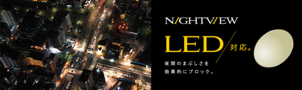 車のヘッドライトや街灯がまぶしくてお困りの方へ、夜間のまぶしさを効果的に抑えるレンズ「ナイトビュー」。近年増えてきているLEDヘッドライトの光にも対応しています。度付き作成致します。遠近両用もOK!お気軽にご相談くださいませ。